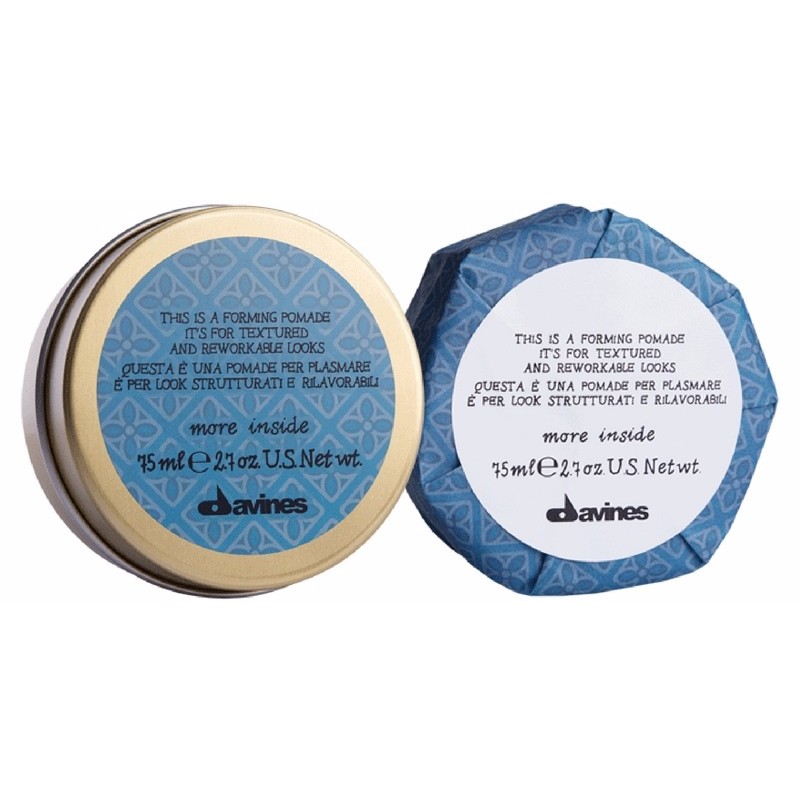 Vi har fundet Davines More Inside Forming Pomade fra Davines hos nicehair i kategorien . Davines More Inside Forming Pomade er en hårvoks, med et hold på 2 ud af 5. Denne voks giver flot glans til din frisure, helt uden at tynge og klæbe til håret. Takket være en unik memory-effekt, er det muligt at re-style frisuren hele dagen. Ønsker du en