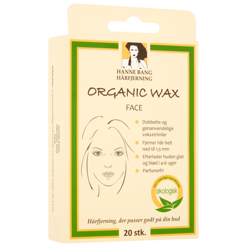 Vi har fundet Hanne Bang Organic Face Wax Pieces fra Hanne Bang hos nicehair i kategorien . Hanne Bang Organic Face Wax er en økologisk hårfjernings-voks, som består af 100 naturlige ingredienser. Pakken indeholder 20 genanvendelige voksstrimler 10 dobbelte og 4,5 ml økologisk kamilleolie. Med voksstrimlerne kan du nemt, hurtigt og effektivt
